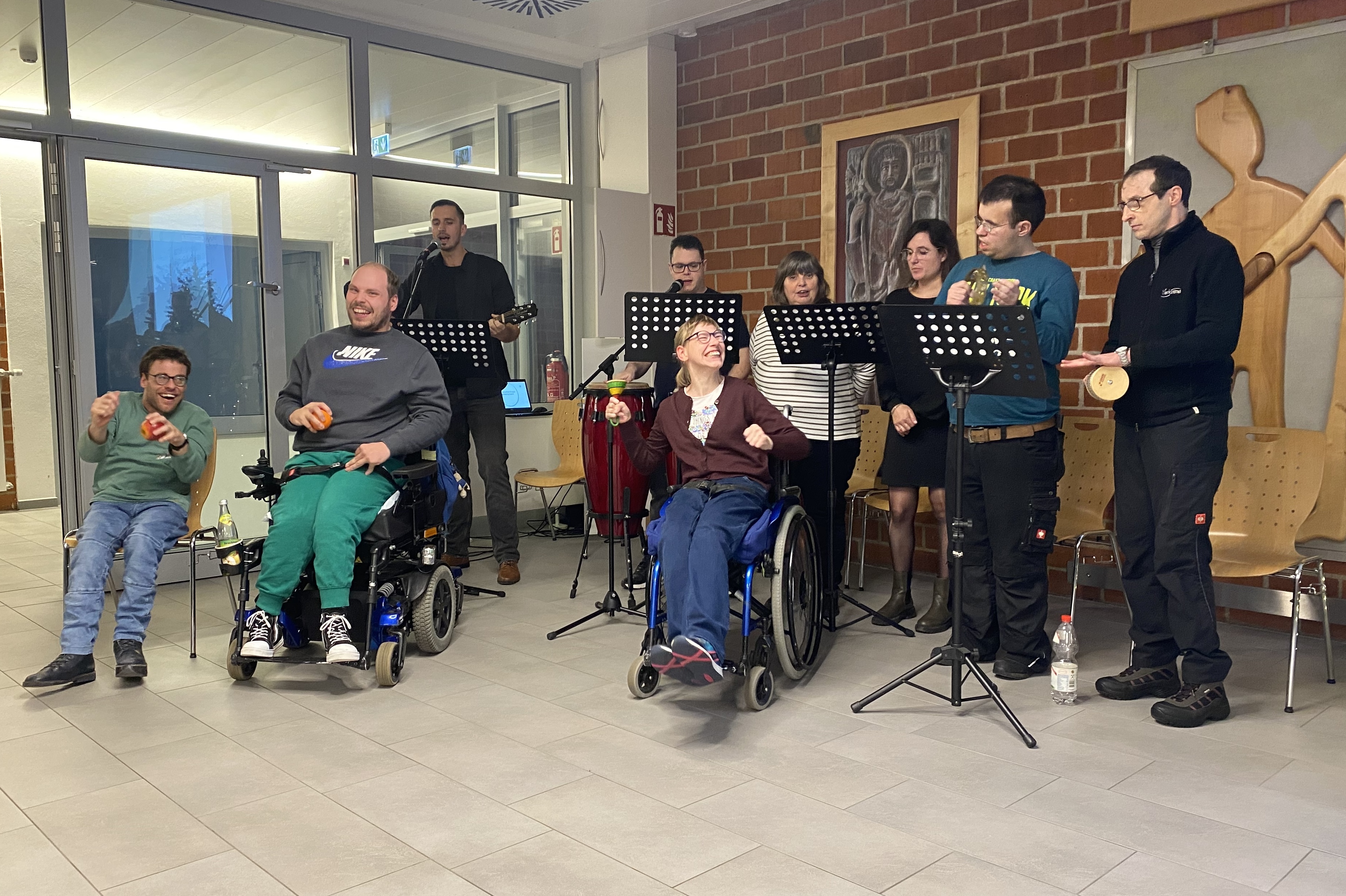 Glückwünsche zum Jubiläum gab auch von den anderen Prüfgruppen der KJF Werkstätten: Die Stiftland-Detektive aus Mitterteich, die Sprach-Entwirrer aus Mitterfels, die Prüf-Tigers aus Straubing und die Text-Checker aus Eggenfelden gratulierten per Videobotschaft. Die Musikgruppe der Straubinger Werkstätten St. Josef umrahmte den Festakt mit leidenschaftlichen Cover-Songs. Das begeisterte Publikum verlangte nach einer Zugabe.