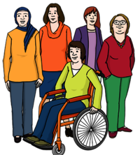 Das Logo Frauen-Beauftragte in Einrichtungen kommt von Weibernetz.