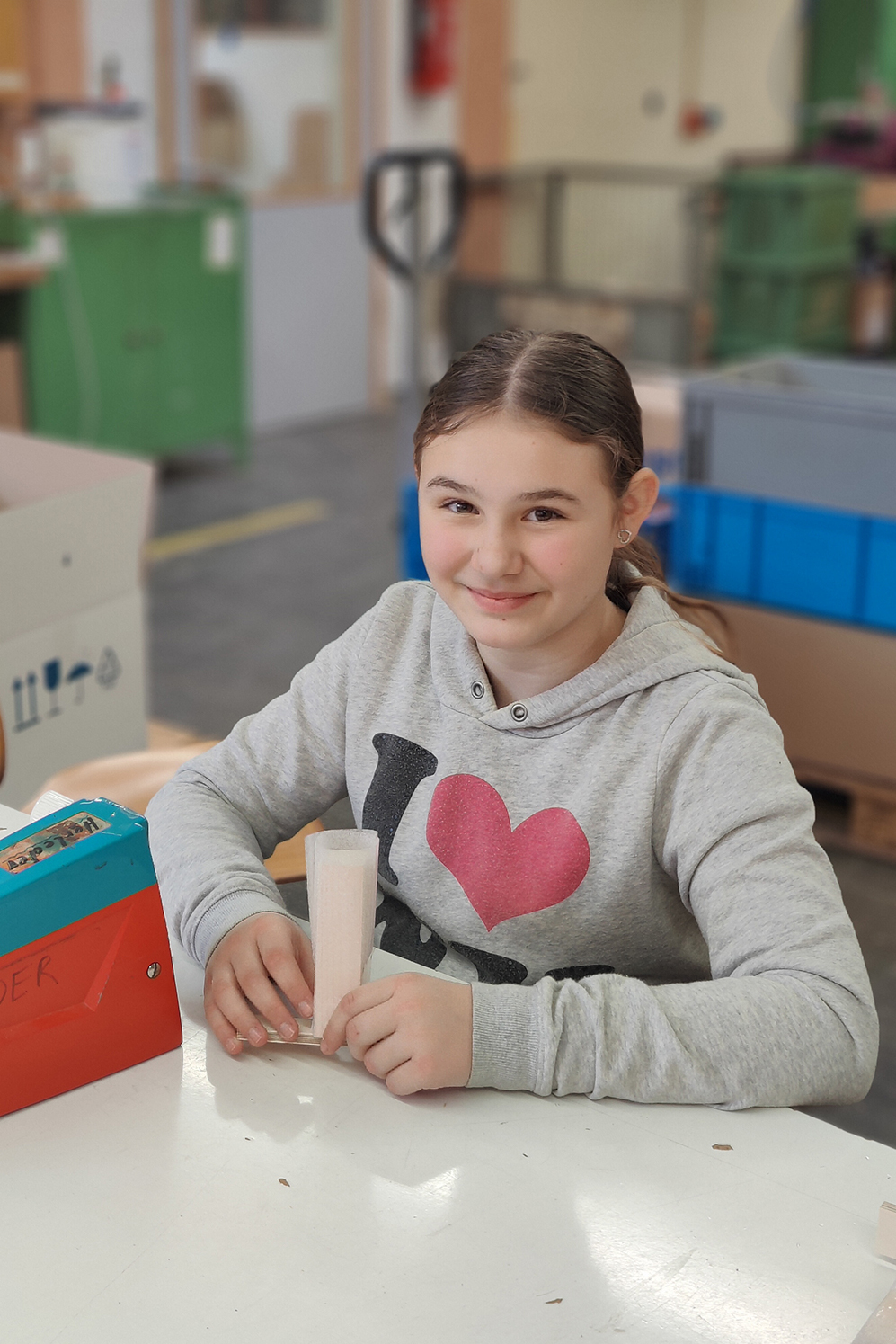 So wurde in den KJF Werkstätten am 25.04.24 auch dieses Jahr wieder jeweils zwei Mädchen und zwei Jungen die Möglichkeit gegeben, sich die Arbeit in der Abteilung „Holz“ bzw. die Betreuung einer Montagegruppe näher anzuschauen und mitzugestalten.