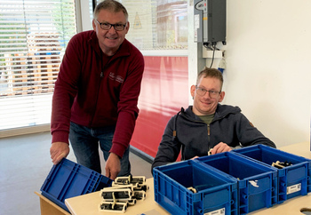 Gruppenleiter Werner Englbrecht fertigte die neuen Tischplatten eigenhändig gemeinsam mit Thomas Gasse, einem Mitarbeiter in der Montagegruppe, an. Gasse erklärte sich im Anschluss noch bereit, das Schleifen und die Lackierung zu übernehmen. Josef Homeier, der außerdem der Vater einer der Mitarbeiterinnen ist, spendete die Tischgestelle. Vielen Dank!