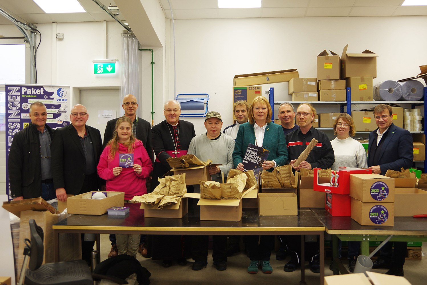 Es wird zur guten Tradition, dass die Mitarbeiterinnen und Mitarbeiter der Straubinger Werkstätten St. Josef Hand in Hand mit dem Bischof arbeiten. Ein schöner Termin, wenn sie miteinander die Weihnachtspackerl fürs Regensburger Weihnachtssingen befüllen! Damit wächst die Vorfreude auf die größte Benefizveranstaltung dieser Art Ostbayerns, deren Erlös in diesem Jahr dem Nachsorgezentrum des VKKK, Verein zur Förderung krebskranker und körperbehinderter Kinder Ostbayern e. V. in Zeitlarn im Landkreis Regensburg zugutekommt. Bischof Rudolf, die Organisatoren Armin und Alexandra Wolf und ihr Team und alle, die sich dafür engagieren und mithelfen, dass möglichst viele Spenden eingehen, helfen damit Kindern, die nach einer Krebserkrankung, wieder in ein unbeschwertes Leben begleitet werden.