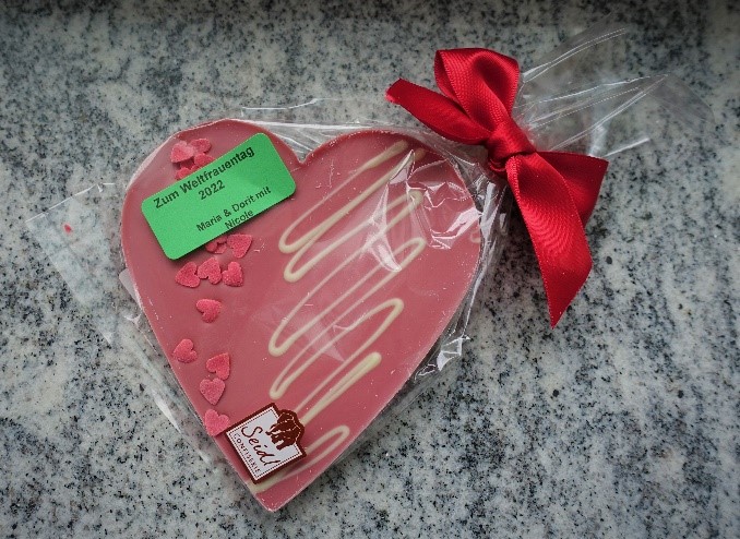 Zum internationalen Weltfrauentag am 08. März 2022 gibt es daher für die Frauen der St. Johannes Werkstätte Regensburg eine besonders leckere Aufmerksamkeit: handverzierte Ruby*-Schokoladenherzen.