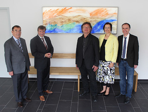 „Kunst-am-Bau-Projekte“, so erklärt es KJF-Direktor Michael Eibl, seien eigentlich bei Neubauten der öffentlichen Hand mit bis zu zwei Prozent der Bausumme etabliert. Aber auch die KJF als Bauherr lege Wert darauf, mit „Kunst am Bau“ Künstler zu gewinnen, die mit ihrer Schöpfungskraft einen besonderen Beitrag zum Selbstverständnis der Einrichtungen leisten und kulturelle Impulse für die Mitarbeiterinnen und Mitarbeiter geben. „In Alfred Böschl haben wir einen ganz besonderen Künstler beauftragt, der Beachtliches für die Kirche in unserer Diözese, insbesondere aber auch für die KJF geleistet hat“, stellt Eibl heraus, „mit ihm ist es uns auch mit dem Kunst.Preis für Menschen mit Behinderung gelungen, über die Kunst Brücken zu schlagen zwischen Menschen mit und ohne Behinderung.“