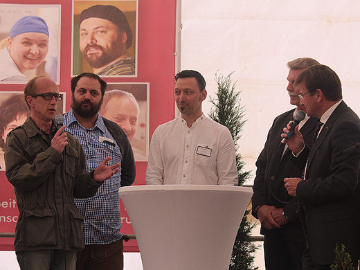 Nach einer Begrüßung durch KJF-Direktor Michael Eibl folgte ein Podiumsgespräch mit Ehrengästen, darunter Bezirkstagspräsident Franz Löffler, Landtagsabgeordneter Tobias Reiß und Bürgermeister Roland Grillmeier. Aus dem Werkstattrat kamen Jürgen Lauterbach und aus dem Bewohnerrat Michael Wittmann zu Wort. Bezirkstagspräsident Löffler lobte das Engagement und die Arbeit der beiden KJF-Einrichtungen. „Wenn wir die Einrichtungen nicht hätten, könnten wir unsere Arbeit nicht machen.“ Auch Tobias Reiß stellte den Stellenwert der Einrichtungen für die Gesellschaft heraus. Es sei wichtig, dafür zu sorgen, dass diese Arbeit auch finanziert werde. Seinen Respekt zollte Bürgermeister Roland Grillmeier allen, die über die vielen Jahre hinweg so viel geleistet hatten: „Werkstatt und Wohnheim gehören zu unserer Stadt. Ein tolles Miteinander, auf das wir stolz sein können.“ Roland Grillmeier nahm das Fest gleich zum Anlass für ein Geschenk und überreichte einen 500 Euro-Spendenscheck. Aus der Firma Schott kam Günter Schedl, Manager Production-/ Transportplanning SCHOTT AG, zu Wort. Er bedankte sich für die Qualität der Arbeit in den Stiftlandwerkstätten: „Schnell, flexibel und pragmatisch“, werde dort gearbeitet.