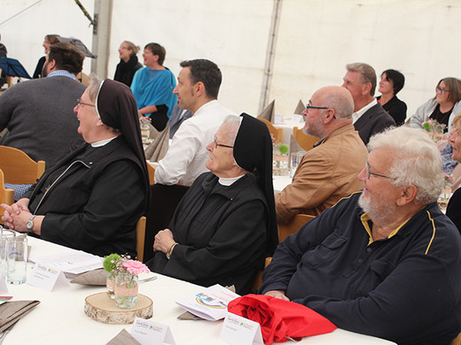 Seit Wochen schon liefen die Vorbereitungen für die Jubiläumsfeierlichkeiten auf Hochtouren. Die Einrichtungsleiterin der Wohngemeinschaften St. Benedikt, Elke Bauer, und der Einrichtungsleiter der Stiftlandwerkstätten St. Elisabeth, Dr. Karl Kick, wussten das Fest bei ihren Mitarbeiterinnen und Mitarbeitern in guten Händen. Sie sorgten einfach für alles: für das große Festzelt, die Bühne und die Einlagen, für den Shuttlebus von den Werkstätten zu den Wohngemeinschaften, für Parkflächen, für gutes Essen und ganz besonders für offene Türen und ein herzliches Willkommen. So nahmen an der Feier rund 500 Gäste teil, darunter viele Ehrengäste aus der Kommunalpolitik, Partner aus dem Netzwerk Inklusion Tirschenreuth, Vertreter aus der Selbsthilfegruppe für Behinderte und Nichtbehinderte in Tirschenreuth, Eltern und Betreuer.