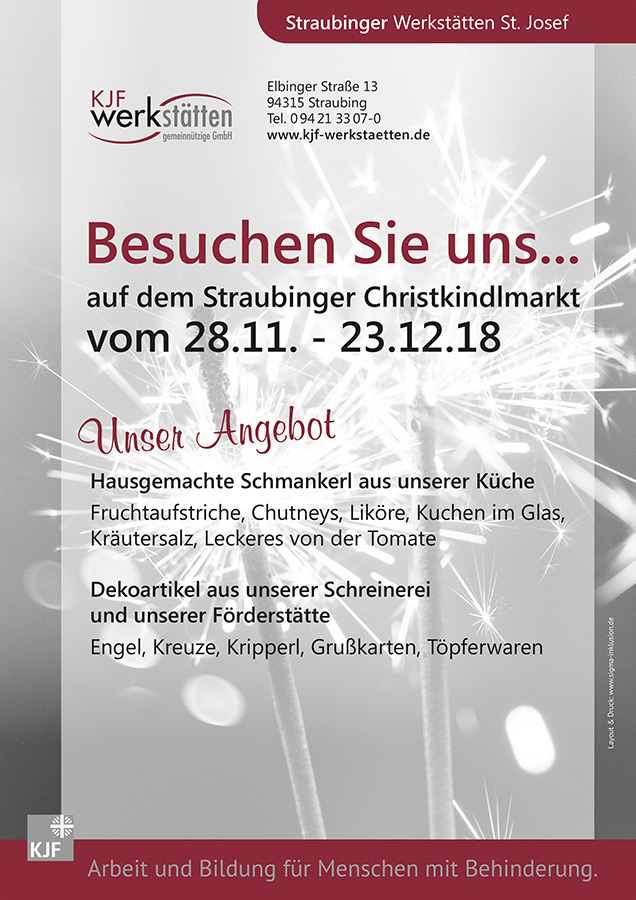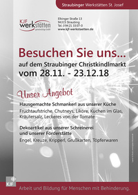 Besuchen Sie die Standler aus den Straubinger Werkstätten St. Josef auf dem Christkindlmarkt vom 28.11. - 23.12.2018!