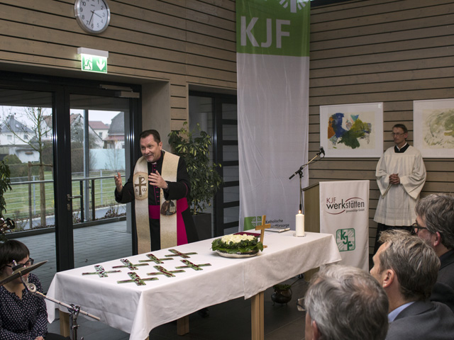 „Heute ist ein besonderer Tag für unsere Förderstätte", stellte Domkapitular Dr. Batz heraus, „denn durch die Erweiterung wird es möglich, noch mehr Menschen zu befähigen und ihnen sinnvolle Aufgaben zu geben. Hier ist ein Ort der Geborgenheit, Freundschaft und Zuwendung geschaffen worden."
