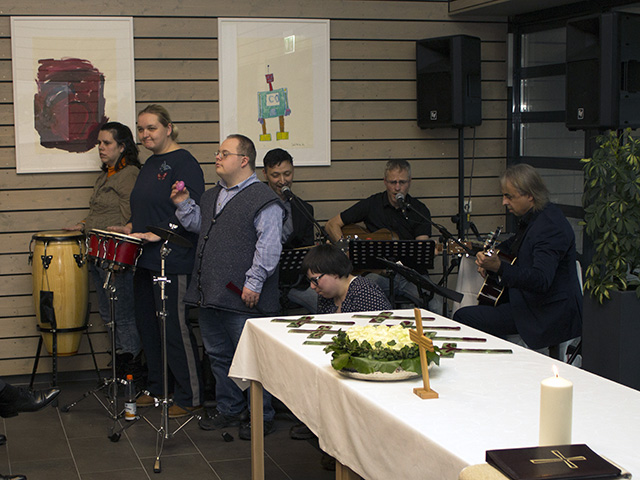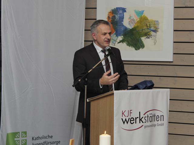 Das sagte Hans Horn, Geschäftsführer der KJF Werkstätten, in seinem Grußwort und machte deutlich, wie selbstverständlich und wesenseigen es für die Dienstgemeinschaft in der KJF und in den Werkstätten ist, mit dem anzufangen, „auf den wir vertrauen und an den wir glauben." Vertrauen, so zeigte Horn weiter auf, Gottvertrauen, Vertrauen in die Mitarbeiterinnen und Mitarbeiter, das Vertrauen der Angehörigen und Familien, die ihre erwachsenen Kinder den Mitarbeitern in der Förderstätte anvertrauen, ist die Grundlage für das Miteinander und das, was die Arbeit in der Förderstätte trägt. Horn bedankte sich bei allen Unterstützern, Förderern und vor allem bei den Angehörigen und Familien für das große Vertrauen in die KJF Werkstätten und die Menschen, die dort tätig sind.